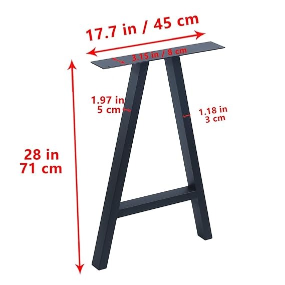 2 Pcs Rustic Decory Metal Desk & Dining Table Legs - Heavy Duty Industrial Modern A Shape Iron Bench Legs (H28'xW17.7')