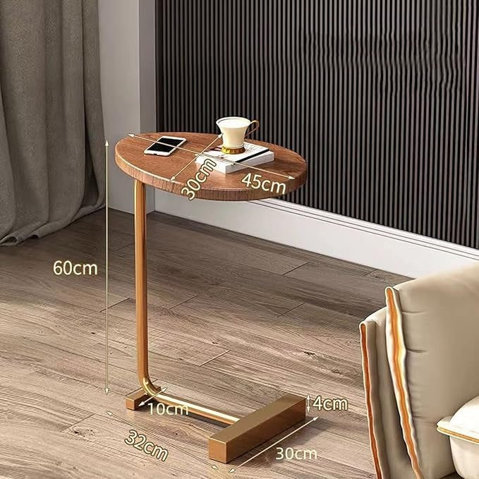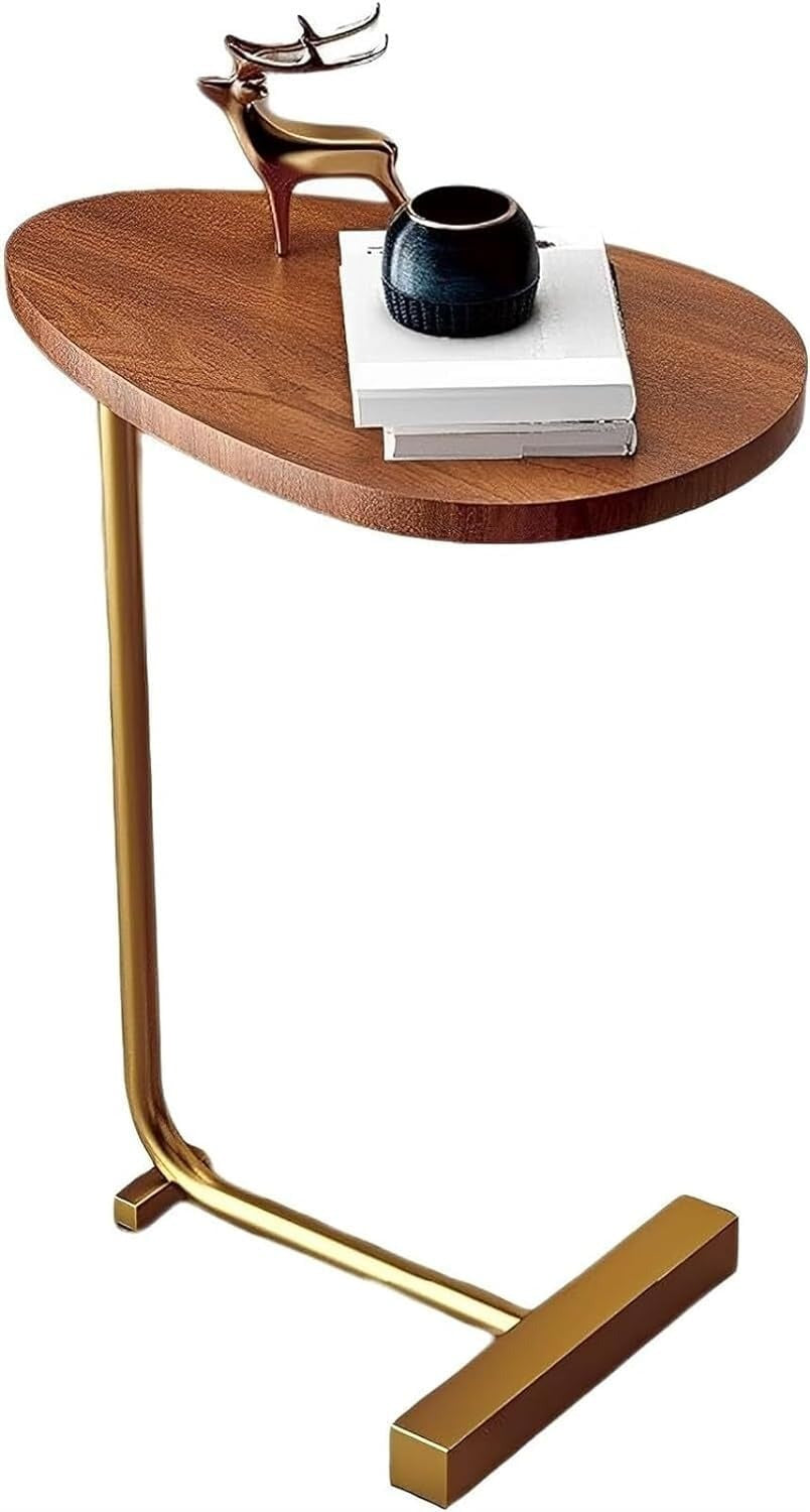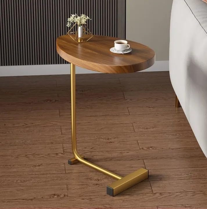 C-Shaped Side Table, Walnut Wood Top with Gold Metal Base, 72 cm Height, Living Room Sofa End Table (Golden)