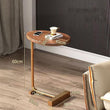 - DESIGN: C-shaped side table featuring a sleek walnut wood top and elegant gold-finished metal base, perfect for contemporary living spaces