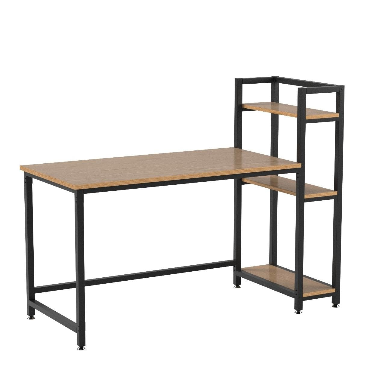 Computer Desk with Storage Shelves, 106x60x108 cm, Industrial Style Workstation, Wood and metal Frame, Black