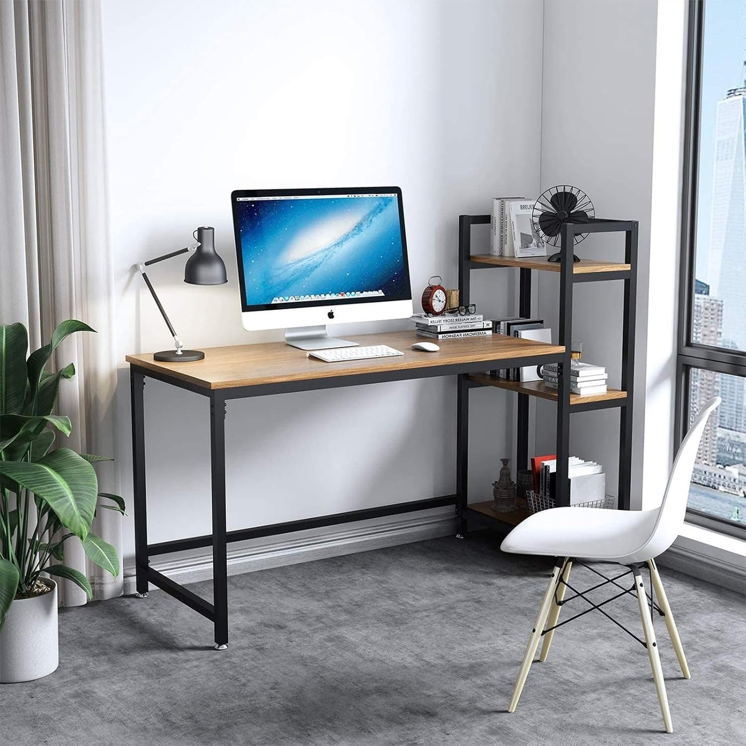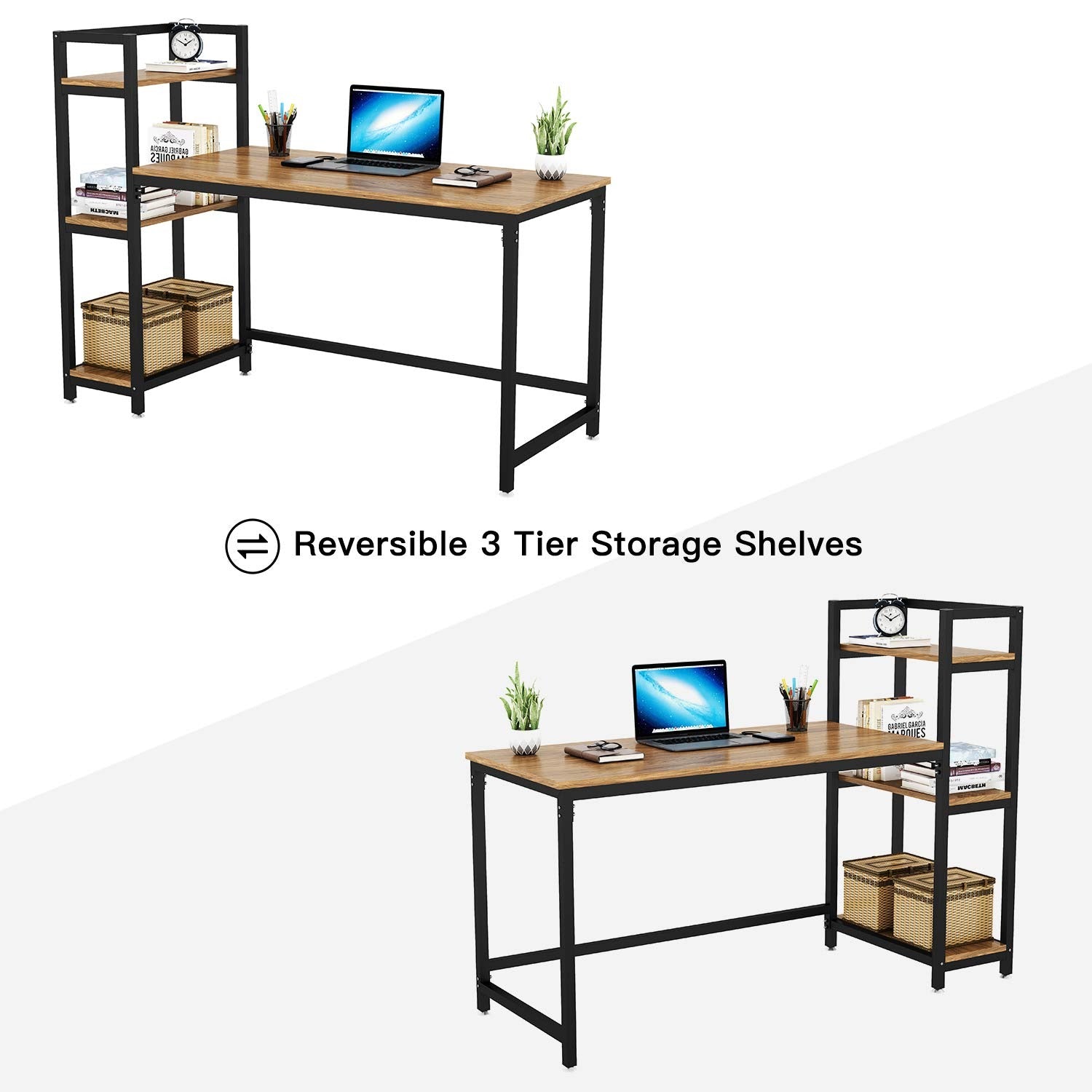 - VERSATILE STORAGE: Features 3-tier reversible shelving unit that can be mounted on either left or right side for books, devices and office supplies