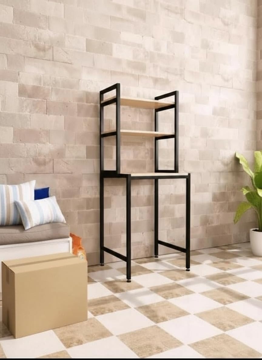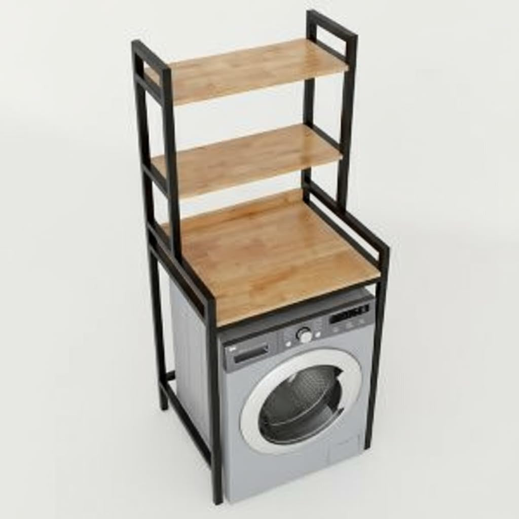 Transform your bathroom or laundry space with this versatile JP IRONS Corner Storage Rack. This thoughtfully designed shelving unit maximises vertical storage while fitting perfectly over your washing machine. Standing at 192.8 cm tall with dimensions of 65x61 cm, this 3-tier rack features a sturdy black metal frame complemented by elegant wooden shelves. The clever design includes varying shelf depths and heights - 50 cm on the left side and 61 cm on the right - making it ideal for storing laundry essentials, towels, and bathroom accessories. The bottom section provides ample clearance for your washing machine, while the middle and top shelves offer organised storage for detergents, cleaning supplies, and decorative items. The industrial-style metal frame ensures stability, while the wood shelves add a warm, modern touch to your space. Assembly is straightforward with all hardware included, and the open design allows easy access to your items while maintaining a spacious feel. Perfect for contemporary homes where style meets functionality.Space-saving vertical rack fits above washing machines for efficient storage. metal frame offers durability and modern aesthetics. Wooden shelves provide ample space for towels, bottles, and small decor. Designed for easy assembly and sturdy placement in corners or laundry rooms. Includes open shelf layout for visibility and quick access to stored items.