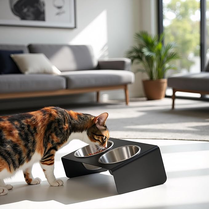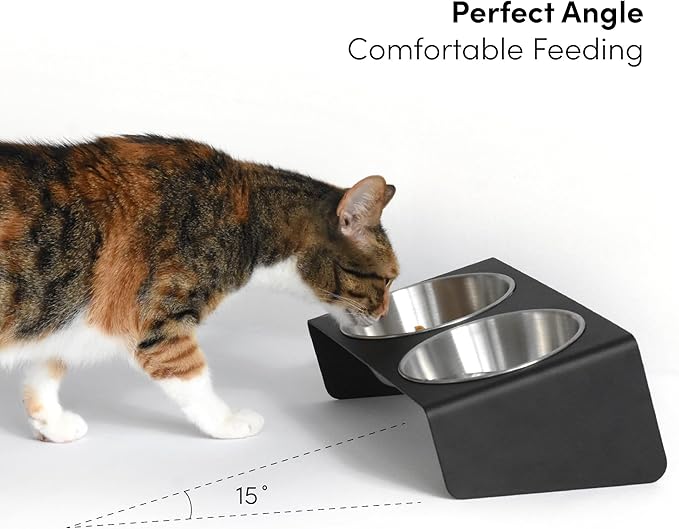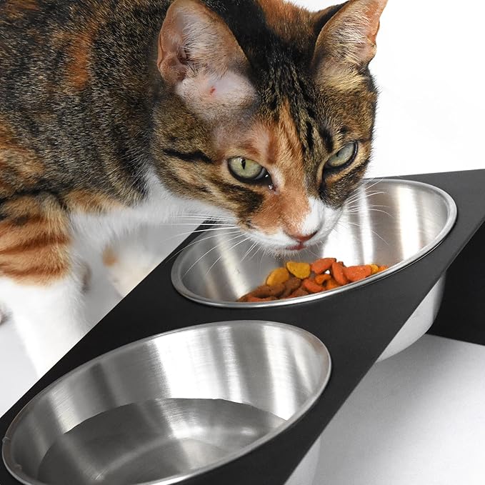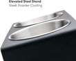 - PREMIUM DESIGN: Modern elevated feeding station featuring two removable stainless steel bowls with a sleek black powder-coated metal stand for style and durability