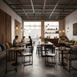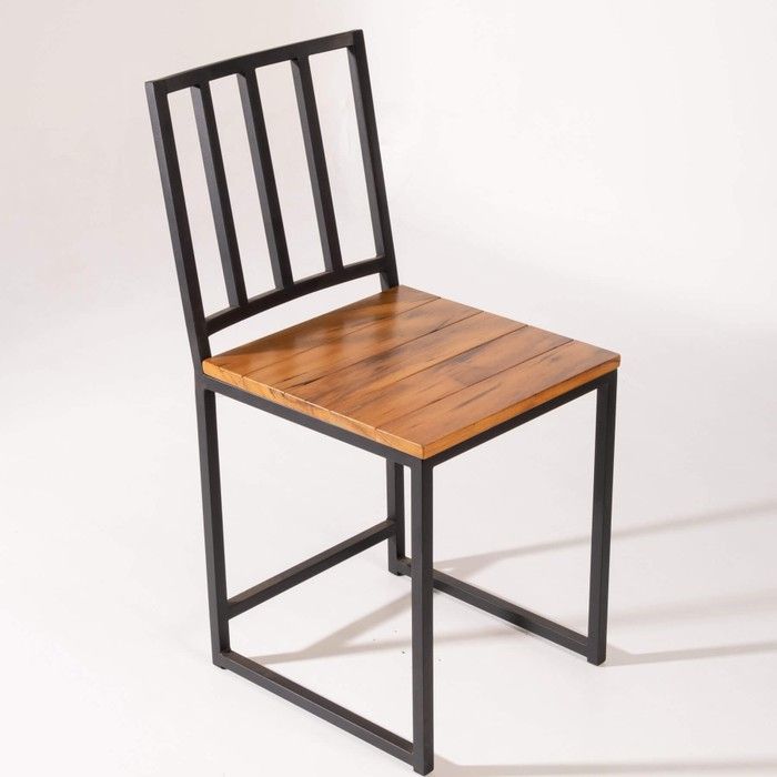 Industrial Dining Chair, Black Metal Frame with Natural Wood Seat, Modern Design for Hotels