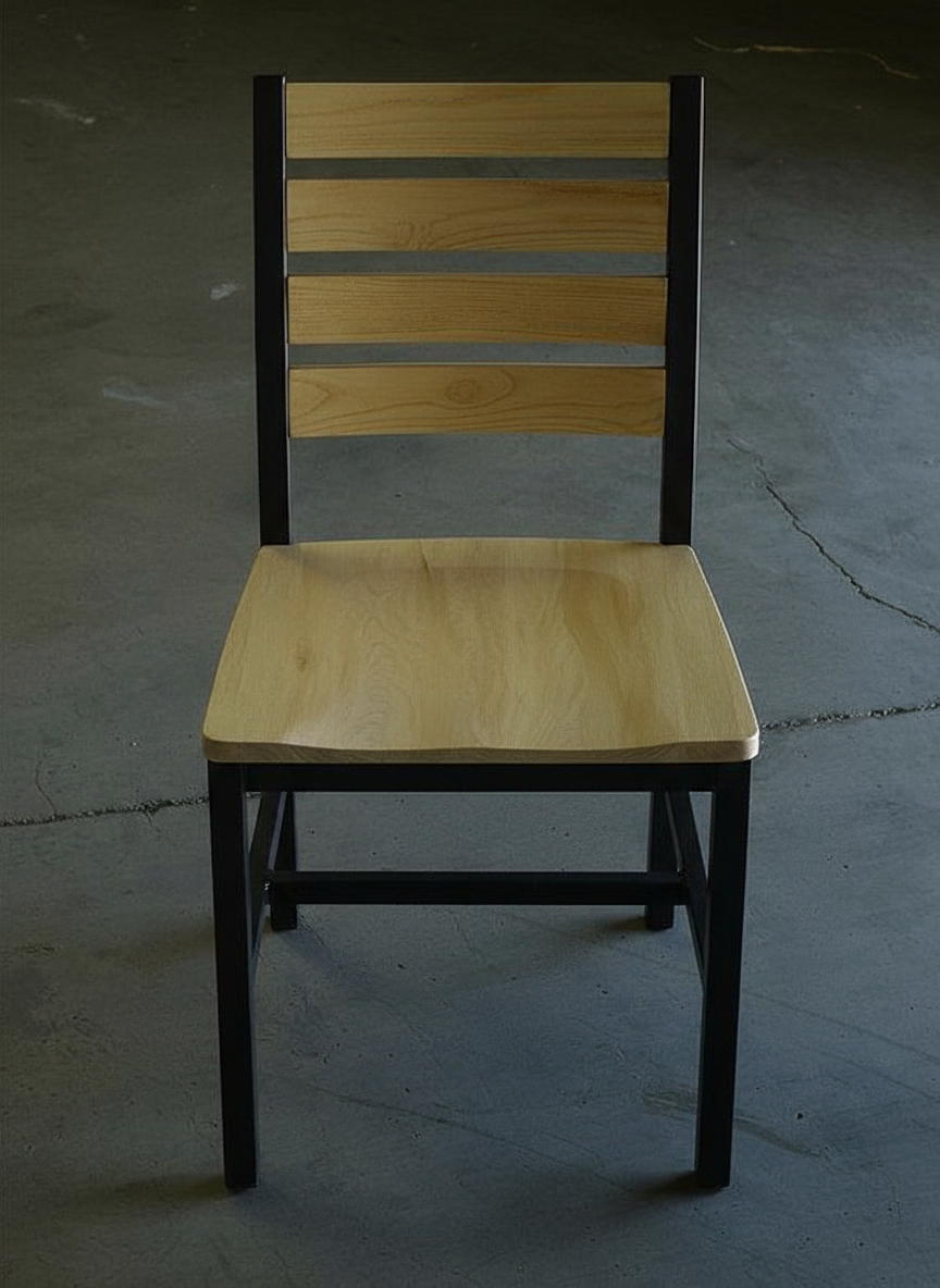Industrial Metal Chair, Walnut Wood Back and Seat, Black Metal Frame, Restaurant-Style