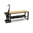 Industrial Shoe Storage Bench with Umbrella Stand, Black Metal Frame with Wood Top, 95x40x30 cm, Entryway Organizer with Lower Shelf