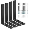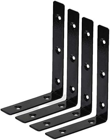 L Shaped Corner Brackets, 15.2 cm x 10.2 cm, Heavy Duty Metal Wall Mounting Brackets with Screws, Black