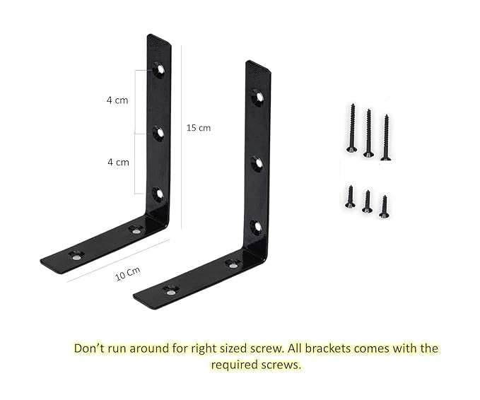 - PACKAGE CONTENTS: Set of 4 black angle brackets complete with matching mounting screws for easy installation