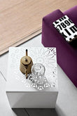 Metal Side Table with Laser Cut Design, 45x38x38 cm, White/Red/Black