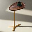 Elevate your living space with this sophisticated modern side table, featuring a stunning combination of engineered wood and carbon steel construction. The oval-shaped wooden top, finished in rich walnut tones, provides an elegant surface for your beverages and decorative items, while the distinctive golden-finished steel base adds a contemporary flair. With dimensions of 45 cm x 30 cm x 60 cm, this versatile piece is perfectly sized to complement your sofa or armchair. The table's minimalist design incorporates a raised lip around the edge, preventing items from sliding off whilst adding a refined detail. The robust carbon steel frame ensures stability and durability, capable of supporting up to 4 kg. Assembly is straightforward, making this an ideal choice for both compact living rooms and spacious balconies. The table's sleek silhouette and premium materials make it a striking accent piece that seamlessly blends functionality with modern aesthetics.