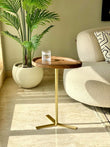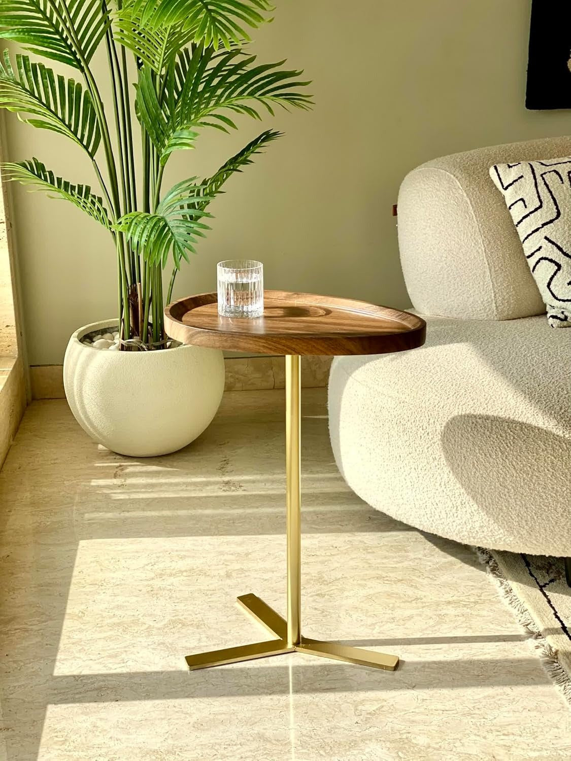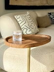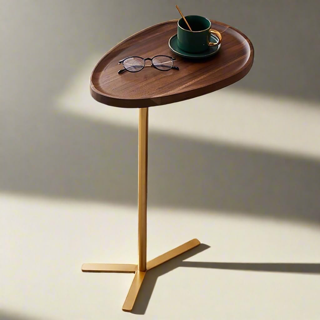 Modern C-Shaped Side Table, Walnut Wood Top with Gold Metal Base, 45 x 30 x 60 cm