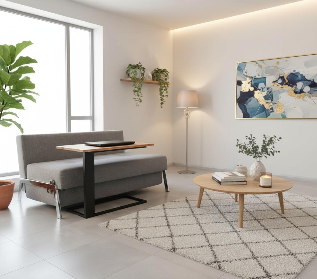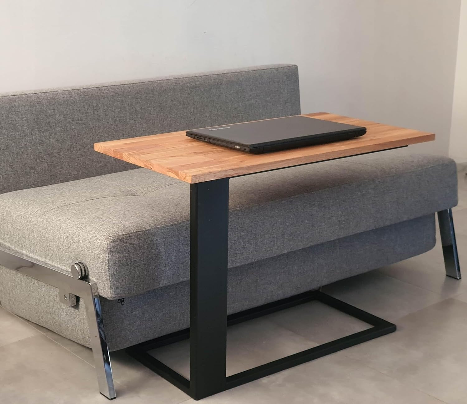 Elevate your living space with this sophisticated C-shaped sofa side table from JP IRONS. The stunning combination of a premium solid wood top and robust black steel base creates a perfect blend of warmth and contemporary style. Measuring 90 cm in length, 45 cm in width, and 65 cm in height, this versatile piece smoothly slides under your sofa, making it an ideal solution for compact spaces. The natural wood tabletop provides ample space for your laptop, books, beverages, or decorative items, while the sturdy metal framework ensures unwavering stability. Whether used as a mobile workstation, snack table, or decorative accent piece, this table adapts seamlessly to your needs. The minimalist design complements modern interiors while offering practical functionality. The table features a scratch-resistant surface that's easy to maintain, ensuring lasting beauty. With minimal assembly required and all hardware included, this table is ready to transform your living room, office, or bedroom into a more organised and stylish space.