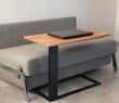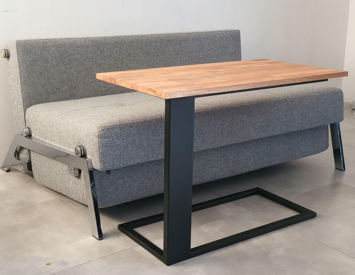 Modern C-Shaped Sofa Side Table, Solid Wood Top with Black Steel Base, Contemporary Laptop Desk for Living Room, 90x45x65 cm