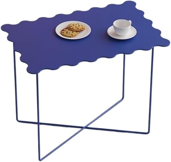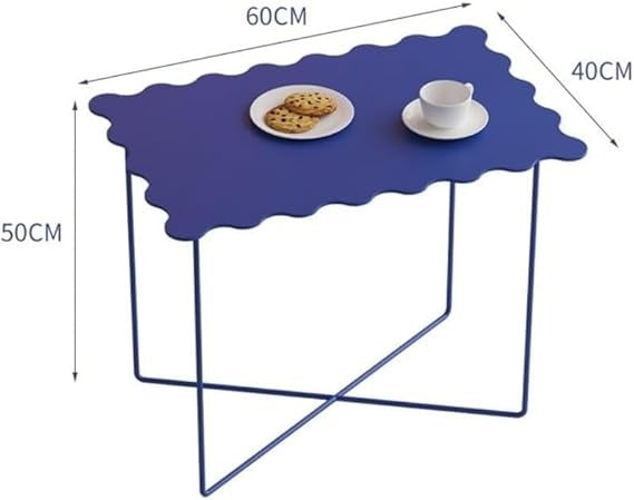 Modern Coffee Table, Blue Metal Frame, Unique Wave Design, 60W x 40D x 50H cm
