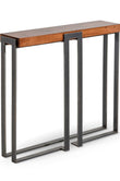 Modern Industrial Console Table, Solid Wood Top with Black Metal Base, 90x20x80 cm, Minimalist Entryway Sofa Table
