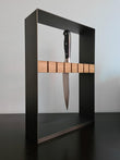 Modern Knife Holder Block, 44.5 cm Height, White Frame with Oak Strip, Wall-Mountable (Black)