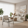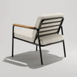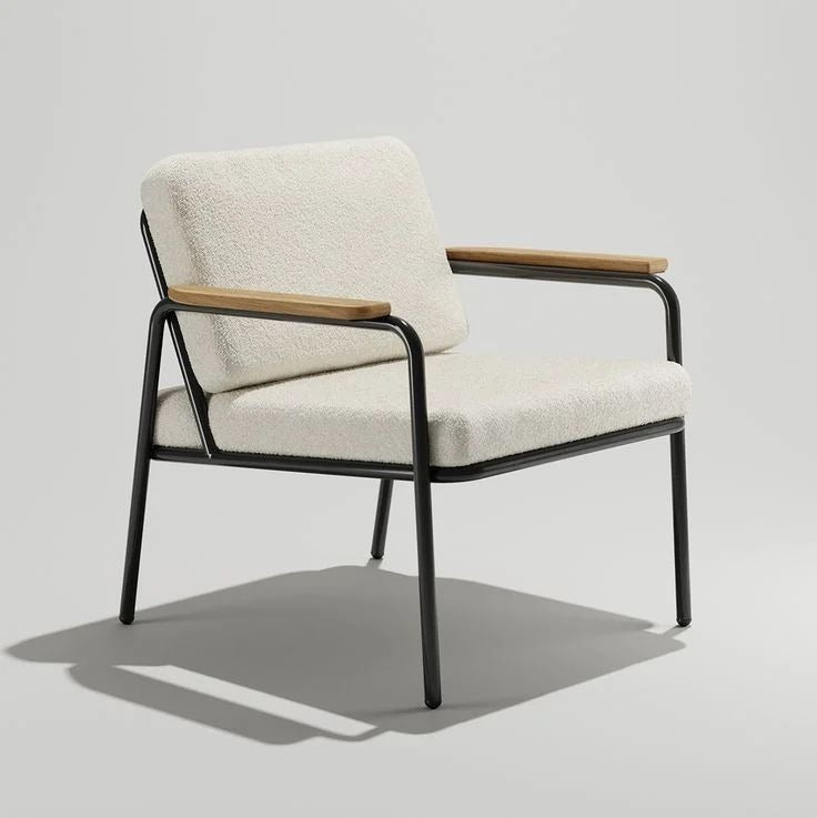 - MODERN DESIGN: Contemporary lounge chair featuring a minimalist aesthetic with black powder-coated steel frame, cream upholstery, and wooden armrests for sophisticated styling