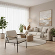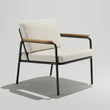 Modern Lounge Chair, Black Steel Frame with Wooden Armrests, Cream Upholstered Cushions, Contemporary Minimalist Design, 78x76x70 cm