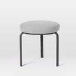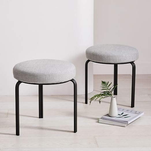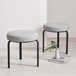 Modern Round Ottoman Stool, Grey Fabric Upholstered Seat with Black Metal Legs, Minimalist Design for Living Room, Bedroom, Office