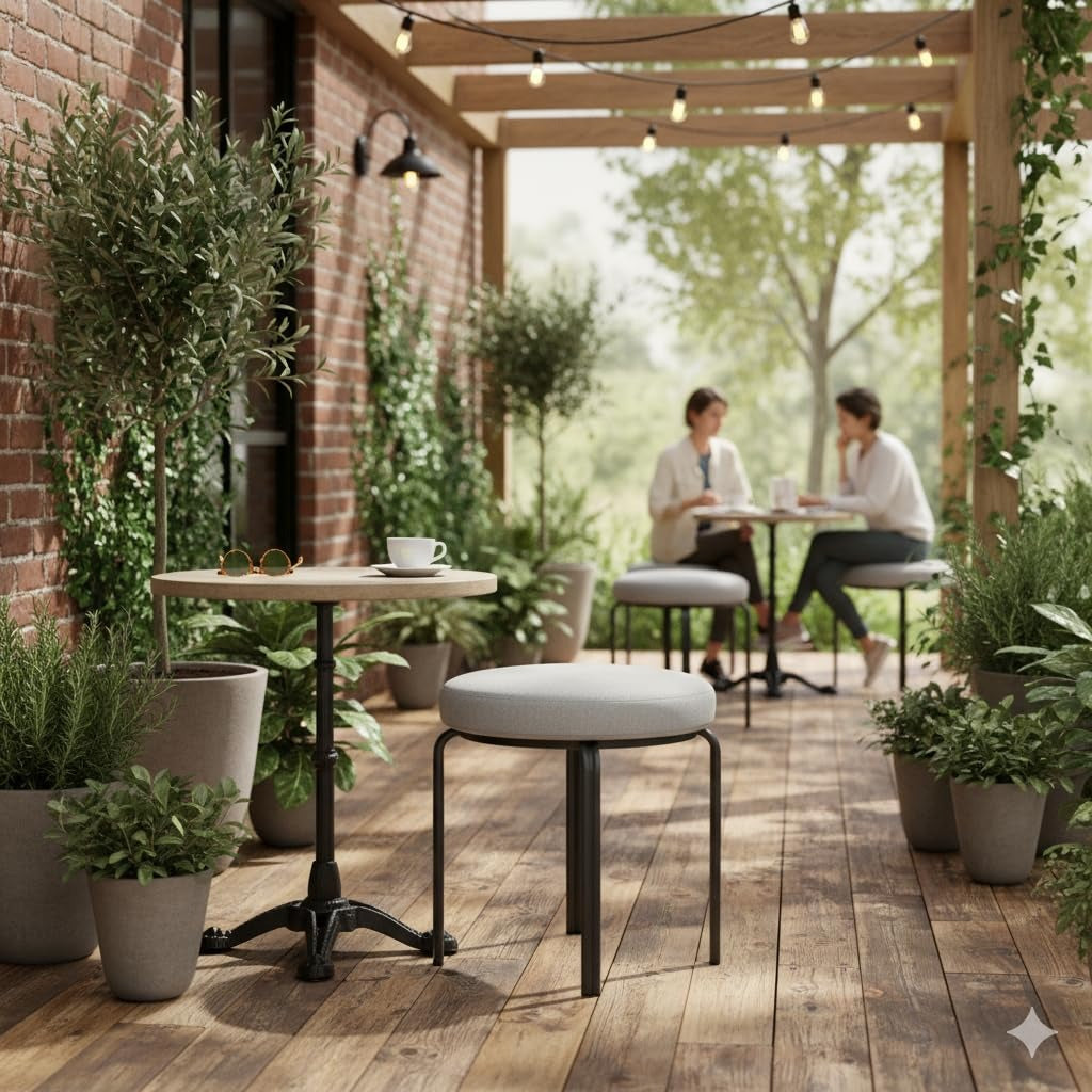 Elevate your living space with this sophisticated round ottoman stool by JP IRONS. Featuring a plush, upholstered seat available in elegant fabric options including grey, yellow, and dusty rose, this versatile piece seamlessly combines comfort and contemporary style. The robust black metal legs provide excellent stability while maintaining a sleek, minimalist aesthetic. Perfect as a footrest, vanity seat, or occasional seating solution, this ottoman adapts effortlessly to various settings - from living rooms and bedrooms to home offices. The lightweight design allows for easy mobility, making it simple to reconfigure your space as needed. The clean lines and circular silhouette create a modern accent that complements any contemporary décor scheme. Assembly is straightforward, allowing you to quickly incorporate this practical and stylish addition into your home. Whether used individually or grouped together for visual impact, these ottoman stools offer both functionality and refined design sensibility.