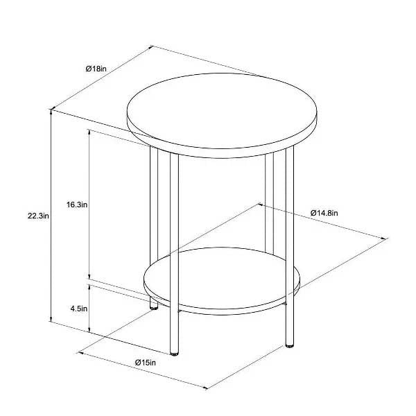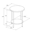 Elevate your living space with this sophisticated round end table that seamlessly blends form and function. The minimalist design features clean lines and a versatile black finish that complements any décor style. Crafted with a durable metal frame, this table offers stability and contemporary appeal. The thoughtfully designed two-tier structure includes matching round shelves, providing ample space for both display and storage. The upper surface is perfect for table lamps, beverages, or decorative items, while the lower shelf keeps magazines, books, or other essentials within easy reach. This practical piece works beautifully as a side table in your living room, as an accent table in your den, or as a stylish nightstand in your bedroom. The sleek silhouette and modern aesthetic make it an ideal choice for those seeking a perfect balance of style and utility in their furniture.