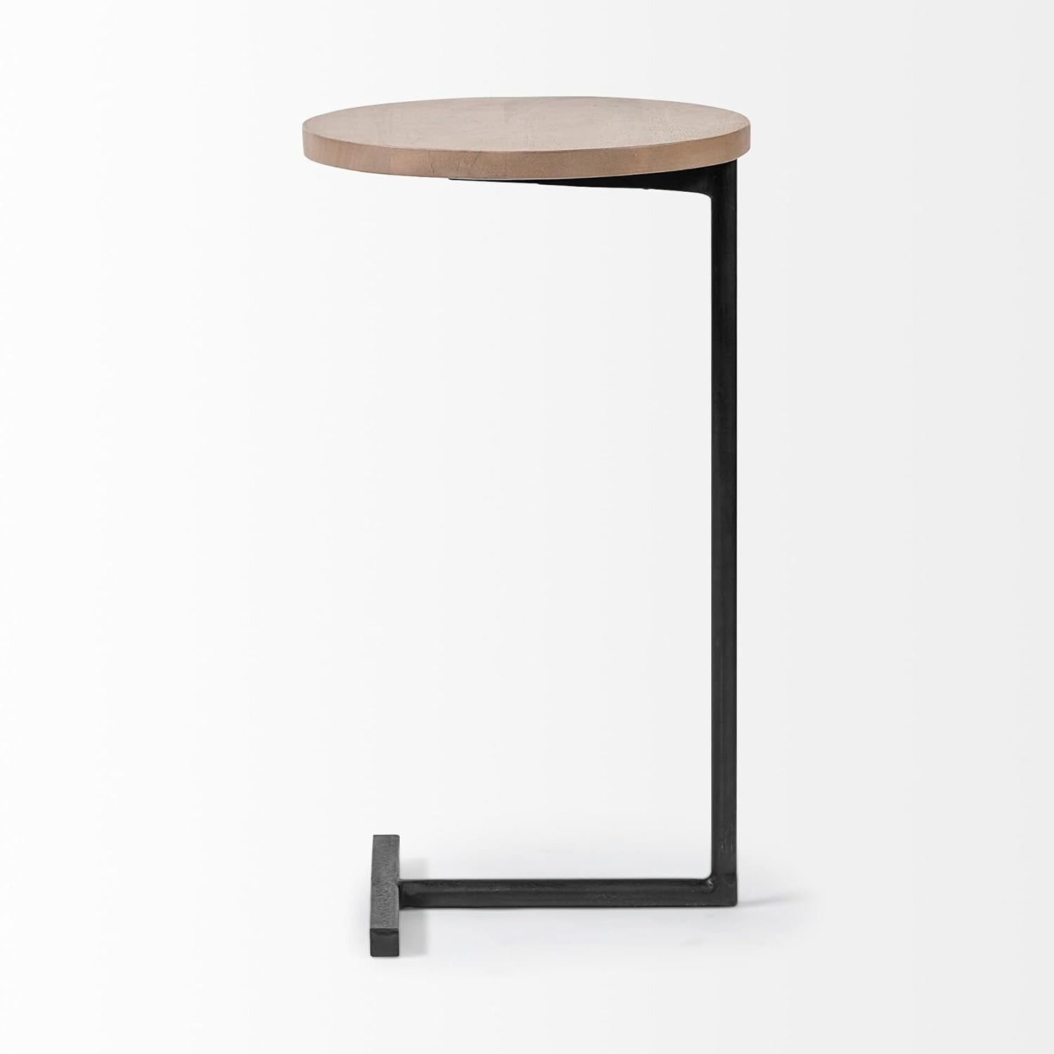 Modern Round Side Table, Wooden Top with Black Metal Base, C-Shaped Pedestal Design (1)