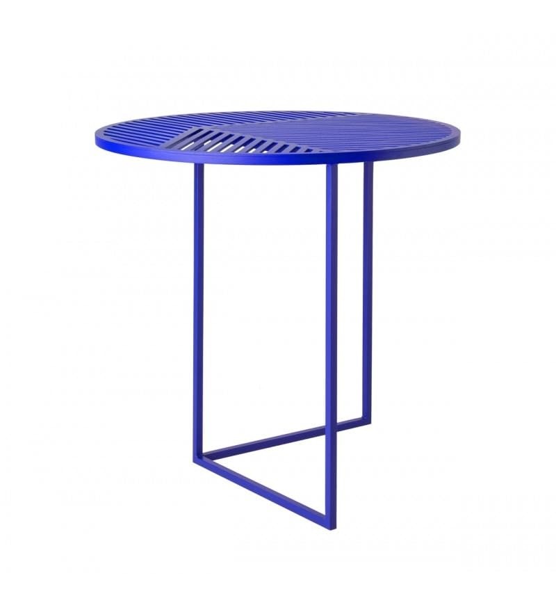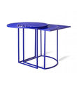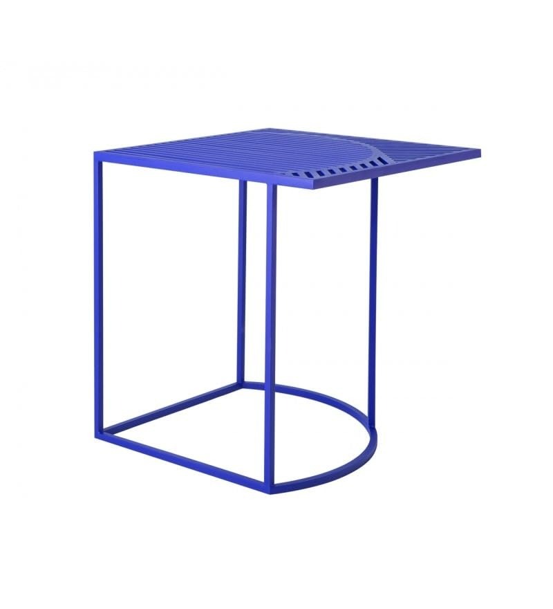 Introducing the JPPY B modern side table from JP IRONS, a striking piece of furniture that seamlessly blends form and function. This contemporary table features a distinctive blue steel construction coated with grainy epoxy resin, making it suitable for both indoor and outdoor settings. The sleek geometric design, created by AR. PUNIT SUTHAR, showcases a unique slatted tabletop pattern that adds visual interest while maintaining durability. With compact dimensions of 40 cm in width, 40 cm in length, and 42.5 cm in height, this versatile piece works perfectly as a side table, corner accent, or outdoor furniture. The robust steel construction, weighing 8 kg, ensures stability and longevity. The weather-resistant coating makes it an excellent choice for patios, balconies, or indoor spaces alike. The table's minimalist aesthetic and bold blue colour make it a standout piece that can complement various décor styles, from modern to industrial.