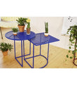 Modern Steel Side Table, 40 x 40 x 42.5 cm, Indoor/Outdoor Use, Blue, Set of 2 (Blue)