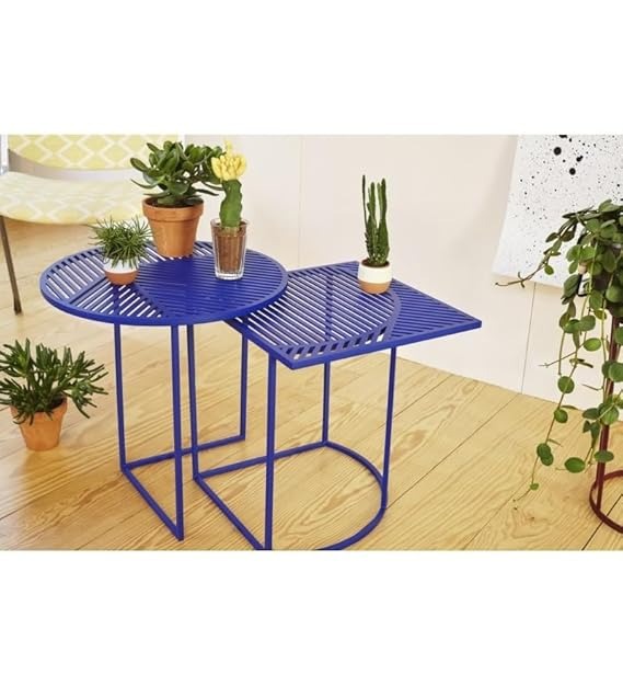 Modern Steel Side Table, 40 x 40 x 42.5 cm, Indoor/Outdoor Use, Blue, Set of 2 (White)