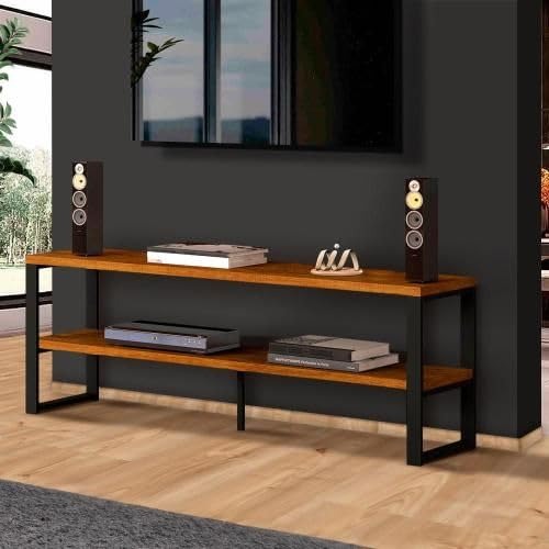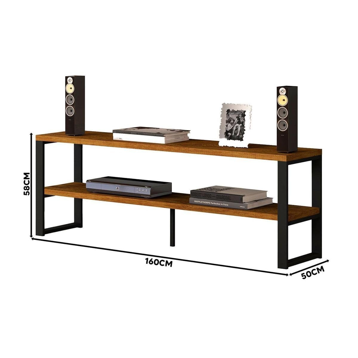 Elevate your living space with this sophisticated JPIRONS modern console table that masterfully combines form and function. The sleek two-tier design features generous dimensions of 160 cm in length, 58 cm in height, and 50 cm in depth, providing ample space for your entertainment setup and decorative elements. The robust black metal frame delivers industrial-inspired stability, while the beautifully crafted wooden surfaces in natural finish add warmth and character. The spacious top shelf is perfect for displaying speakers, art pieces, or cherished collectibles, while the lower shelf offers additional storage for media players, books, or magazines. This versatile piece works brilliantly as a TV unit, media console, or display shelf, adapting seamlessly to your needs. The minimalist aesthetic harmoniously blends with contemporary interiors, making it a standout addition to any room. The thoughtful design ensures straightforward assembly and effortless maintenance, perfect for modern living spaces where style meets practicality.