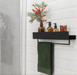 Modern Wall-Mounted Bathroom Shelf, Matte Black Metal, Towel Bar and Storage Shelf
