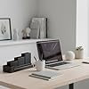 Multi-Compartment Desk Organizer, Black Metal, 28x9x12 cm, 4 Upright Slots with Front Tray, Professional Office Stationery Storage