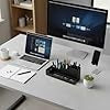 Transform your workspace with this premium JP IRONS desk organiser, crafted from durable matte black metal. The thoughtfully designed organiser features four upright compartments perfect for storing pens, pencils, markers and other writing implements, while the spacious front tray efficiently manages smaller office essentials like paper clips and push pins. Measuring 28 cm wide, 9 cm deep, and 12 cm tall, this sophisticated storage solution maximises desk space while keeping your tools readily accessible. The powder-coated steel construction ensures lasting durability and maintains its professional appearance. Whether placed in a corporate office, home study, or creative studio, this versatile organiser helps maintain an orderly workspace that promotes productivity. The sleek design complements modern office aesthetics while providing practical organisation for all your desktop essentials. Simple to maintain with just a quick wipe down, this desk organiser is an indispensable addition to any professional workspace.