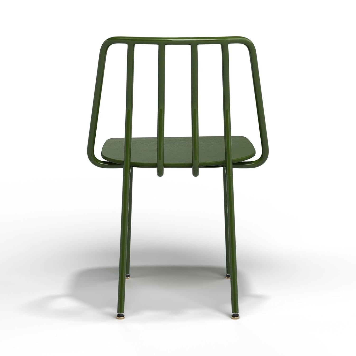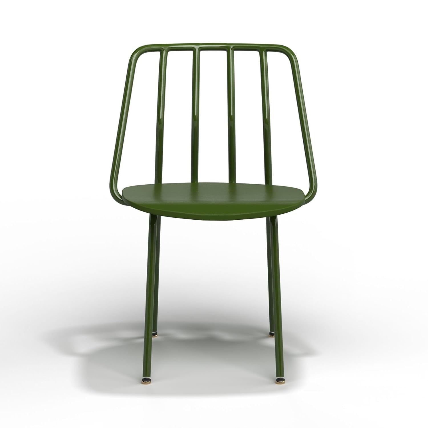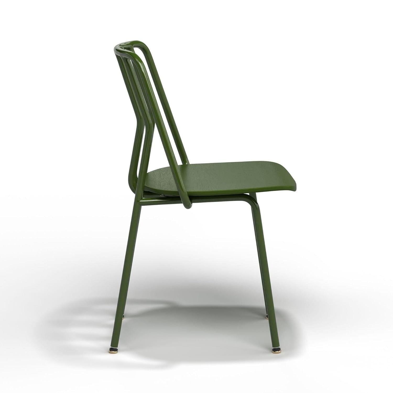 Introducing this striking steel dining chair that beautifully marries form and function. The chair showcases a distinctive '80s-inspired design with its elegantly bent slatted back that seamlessly flows into the sturdy legs, creating a harmonious silhouette. Finished in a sophisticated olive green, this chair adds a bold yet versatile touch to any dining space. The robust steel construction supports up to 125 kg, whilst maintaining a lightweight profile at just 6.8 kg. With dimensions of 53 cm width, 49.5 cm depth, and 79.5 cm height, and a comfortable seat height of 45.7 cm, it's perfectly proportioned for both comfort and practicality. The modern design features clean lines and a minimalist aesthetic that works wonderfully in contemporary settings, whether as a standalone piece or as part of a dining set. The durable steel construction ensures this chair will maintain its structural integrity through years of daily use.