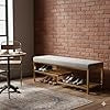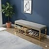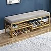 Upholstered Shoe Storage Bench, Grey Padded Seat with Gold Metal Frame, 2-Tier Rack, 100x35x50 cm, Modern Entryway Furniture