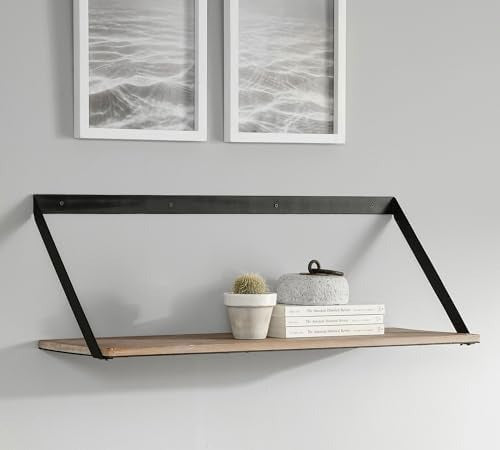 Wall-Mounted Shelf with Iron Frame and Fir Wood, Multiple Sizes, Aged Wood with Iron Finish (30 INCH)