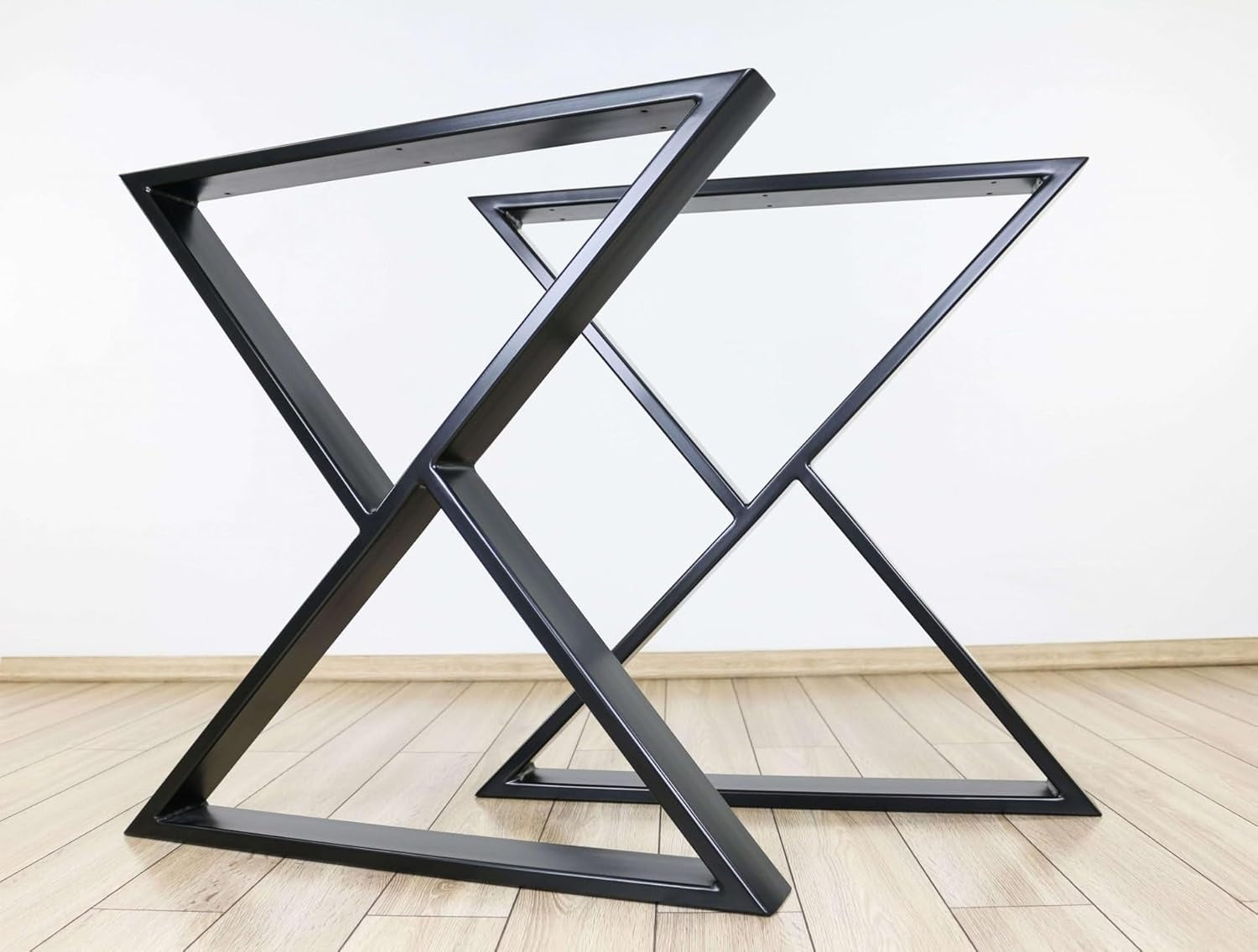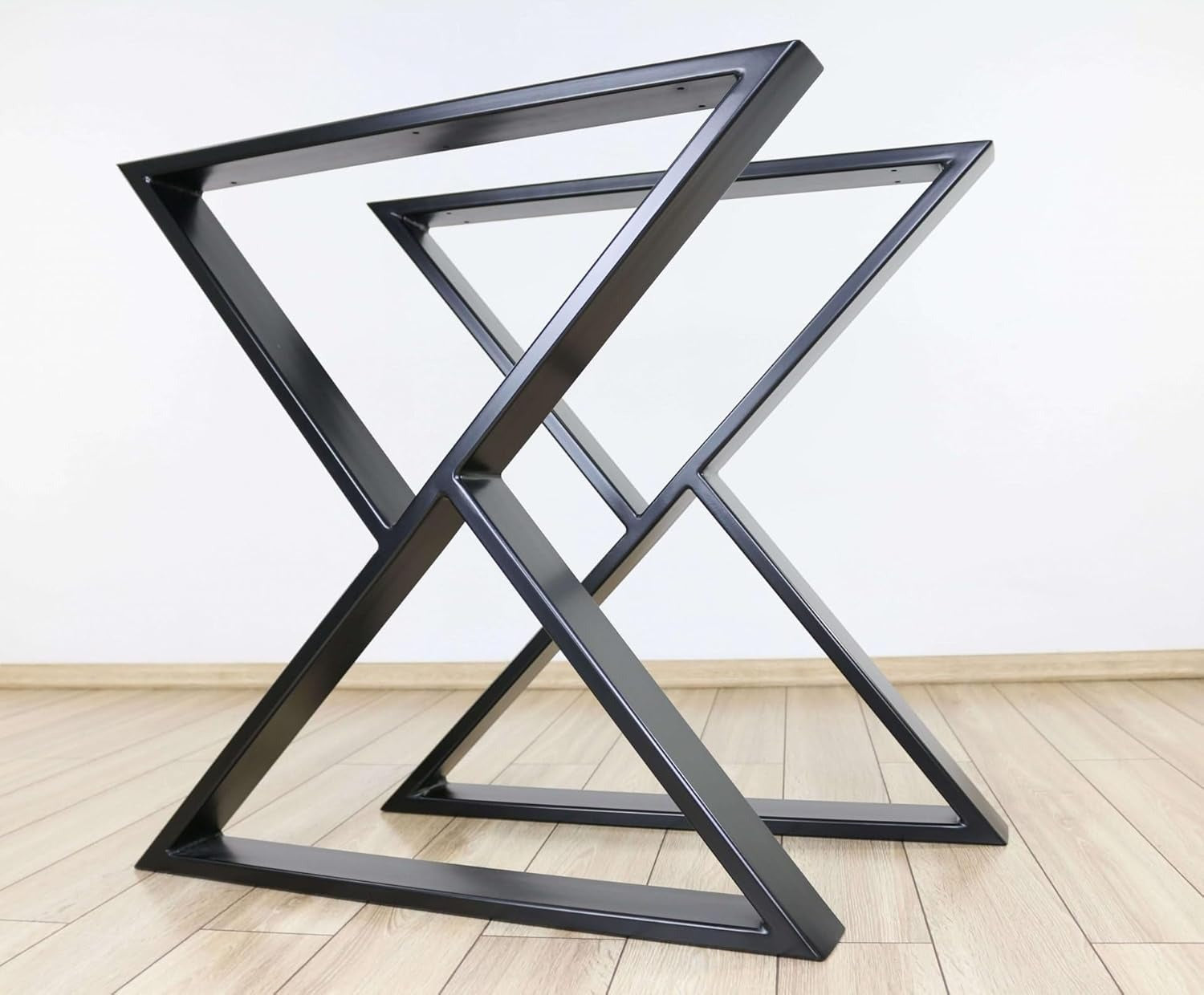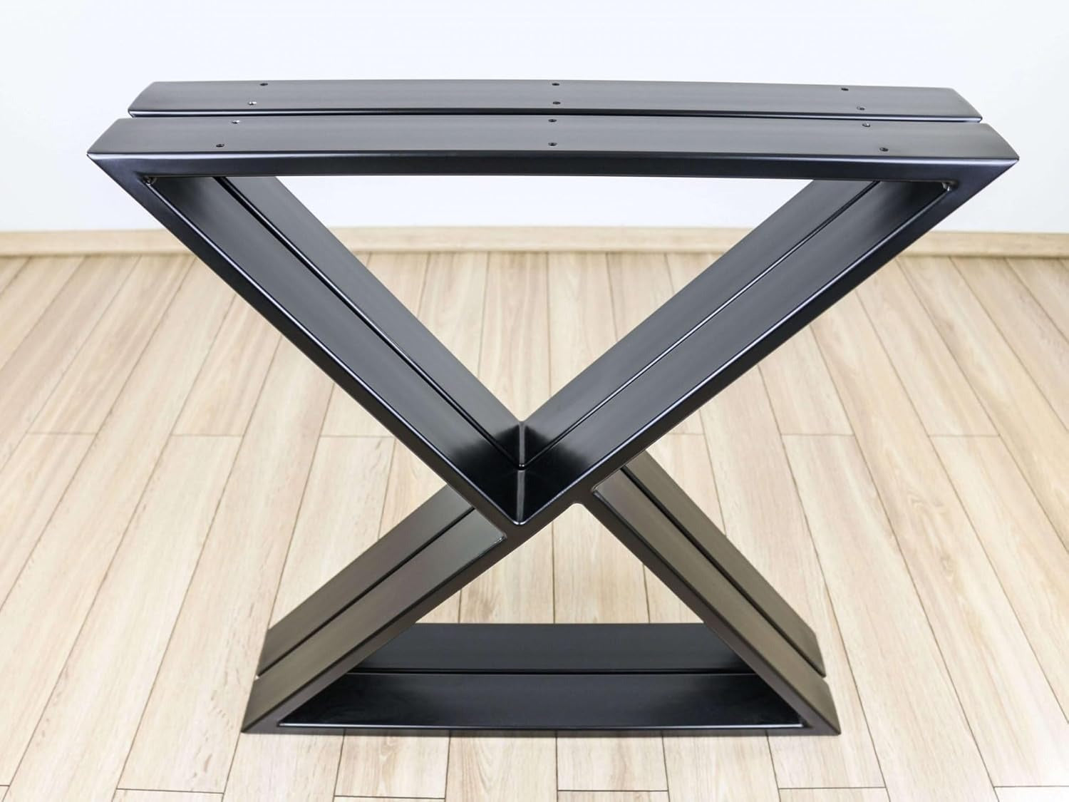 X-Shaped Steel Table Legs, 71 cm x 71 cm, Set of 2, Black Powder Coated, Industrial Modern Design